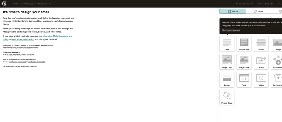 And as it says it's time to design the mail. I’d get rid of this header here and just hit the trash can and get rid of that.