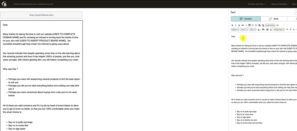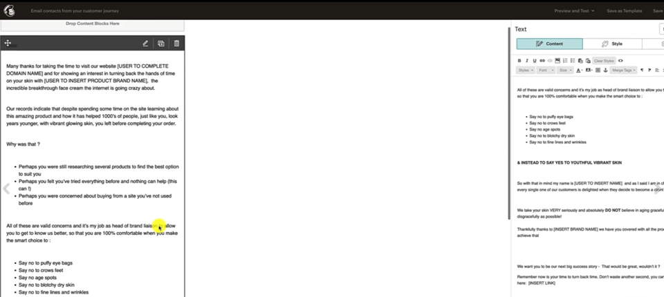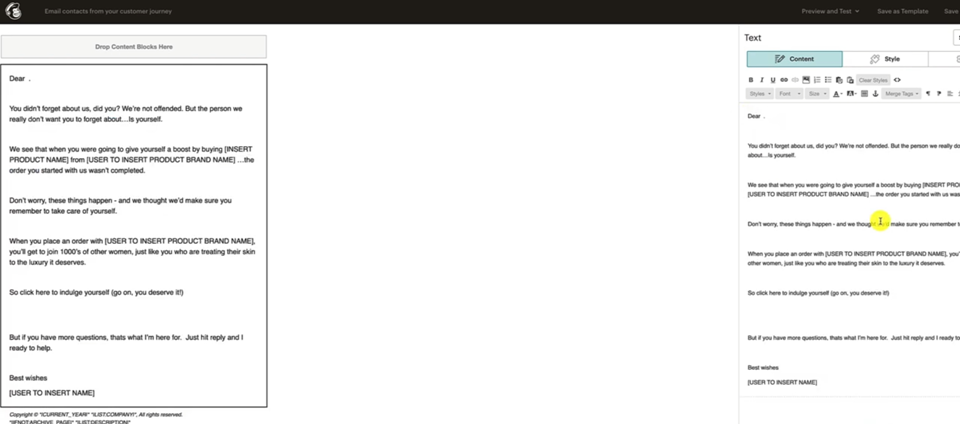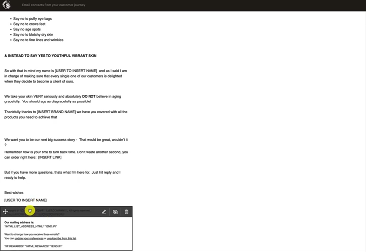 And let's get the content out of this one because this one's going to be our second email is right here, Skin Email 2, did you forget to put yourself first.