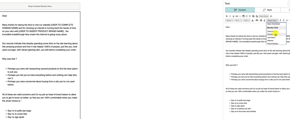 And the way you do that, in MailChimp is under this Merge Tags.