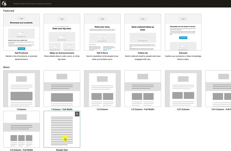 The one you want to go for is this one at the very bottom that just says Simple Text. And then that will load up the template.