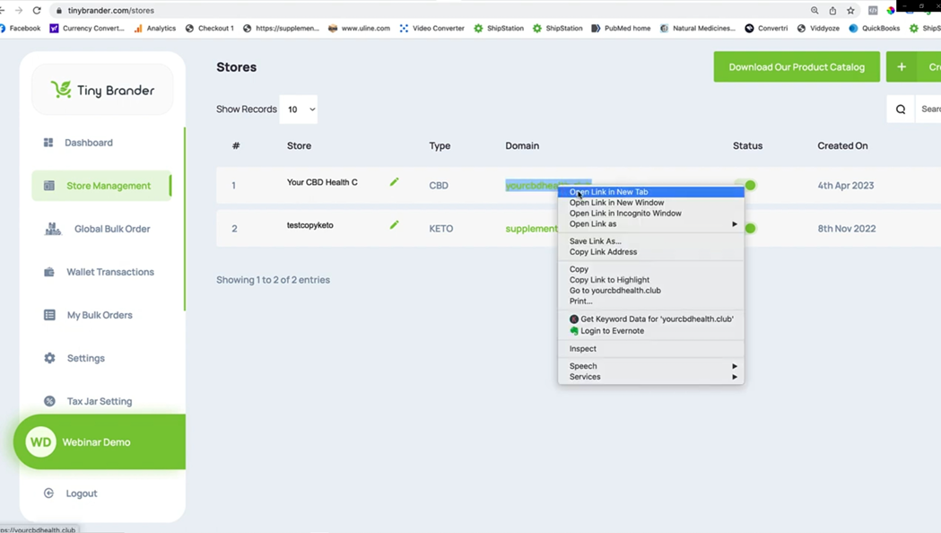 So I have it all up on the big screen here. Let's go take a look. So if we go into store management in this test store, and I'm going to do a couple of things here.