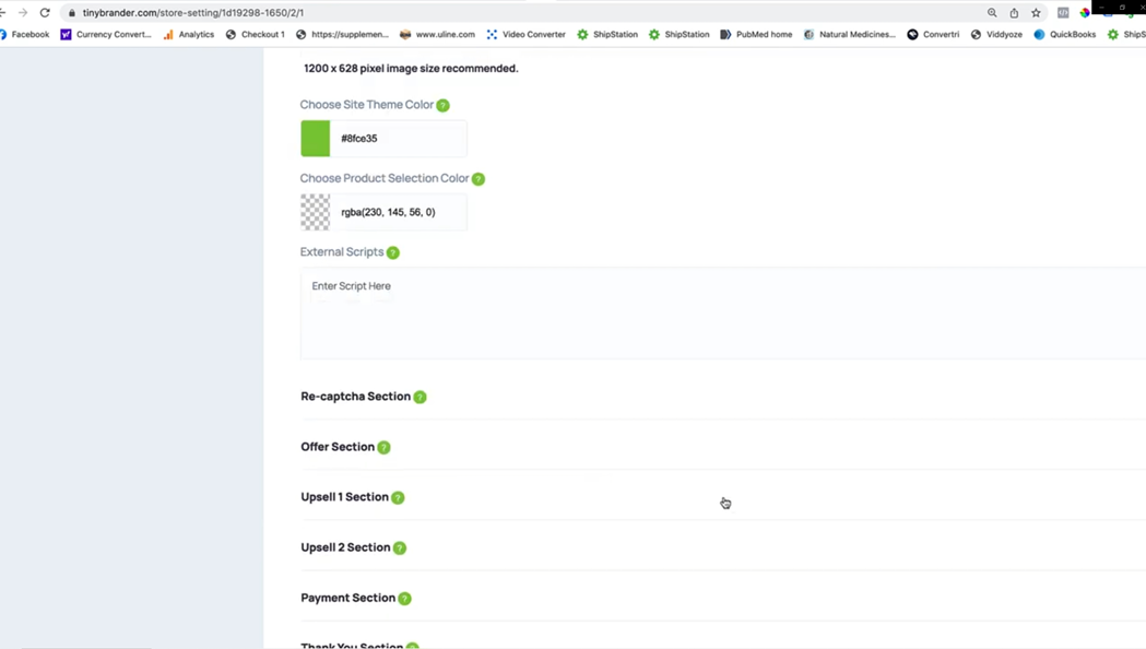 And we can affect the colours that are shown here for the text. And we can amend those down here. In our store settings, you can see the upsell one section here.